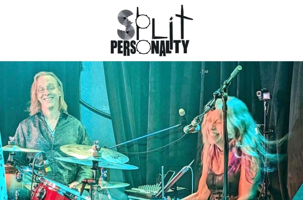 At the end of 2022, the drumming couple decided it was time to start their own project. Split Personality is a four piece band that features Jenie (drummer/singer for local band CrashRocket) on vocals while playing drums along with her husband, Billy, accompanying her on drums. The drumming duo use two drum sets to engage the audience like never done before. While Jenie will occasionally come out front to sing, she definitely likes being behind the kit where she can engage her husband with drum parts and yes….the inevitable drum battles.